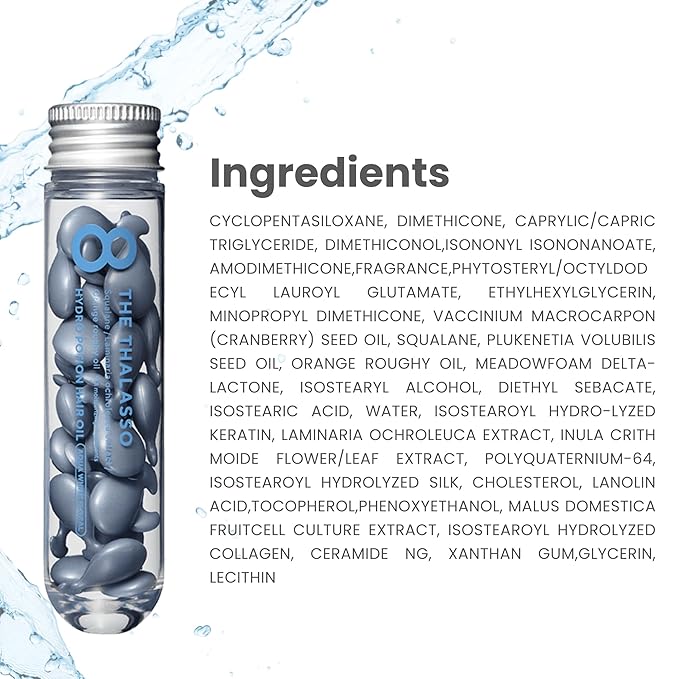 8 THE THALASSO Potion Hair Oil for Frizzy & Damaged Hair Women & Men, Keratin Hair Care for Repairing with Squalane & Deep Ocean Water, Sulfate & Paraben Free, AQUA WHITE FLORAL, 24 Capsules