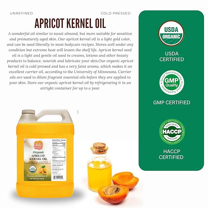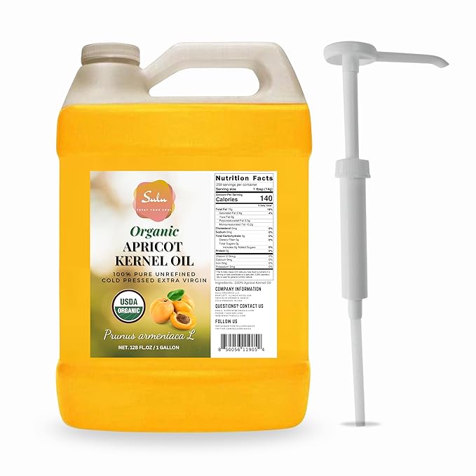 1 Gallon USDA Organic Cold Pressed Unrefined Apricot Kernel Oil