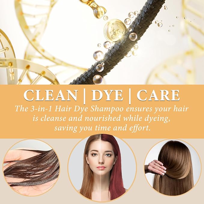 - 3-IN-1 HAIR COLOR FORMULA: Discover the convenience of 3-in-1 formula designed to serve as a hair dye, hair wash, and hair care. It provides a complete hair shampoo and conditioning experience during the coloring process, ensuring your hair is nourished, vibrant, and protected.