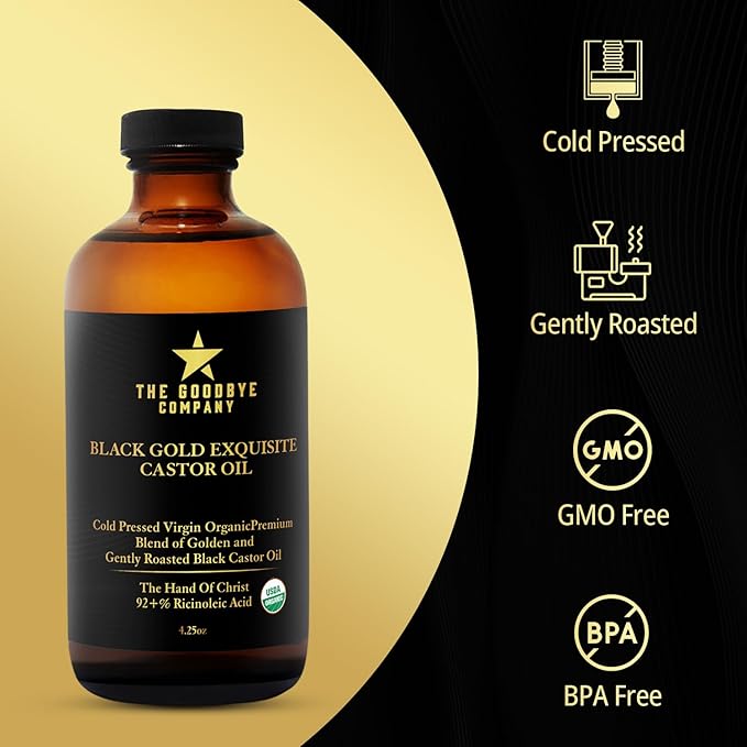 The Goodbye Company Black & Gold Castor Oil Blend – USDA Organic, Cold-Pressed & Unrefined – Pure Hexane-Free Oil for Hair, Skin, Body, Eyelashes & Eyebrows