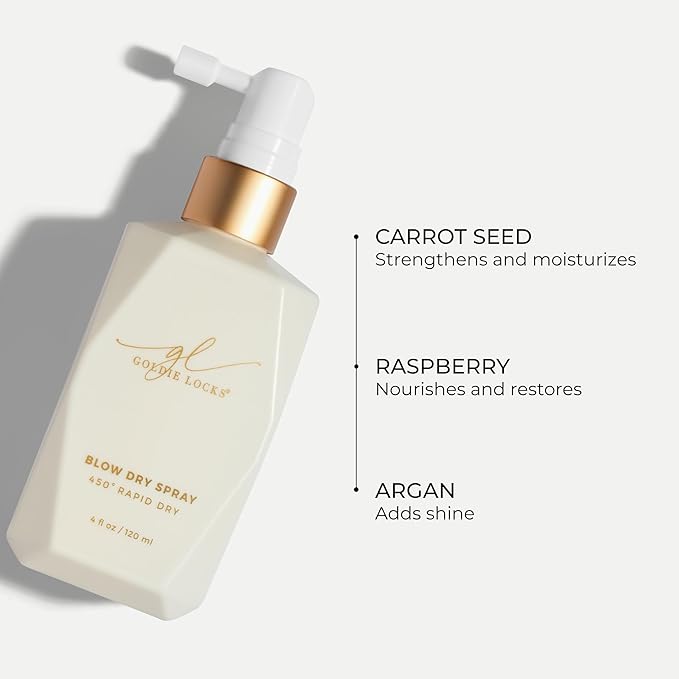 Goldie Locks Blow Dry Spray - 450°F Heat Protection and Frizz Control - Hydrating Blow Dry Mist with Style Memory - Safe for Extensions & Color-Treated Hair - Protein-Free - 4 fl oz