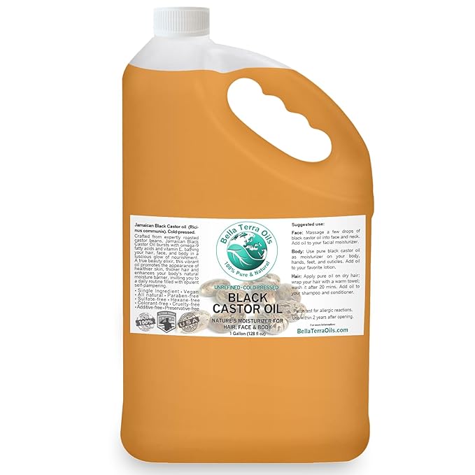 Bella Terra Oils Black Castor Oil for Lustrous Hair and Smooth Skin – 1 gallon, Nourishing and Revitalizing, Pure, Unrefined