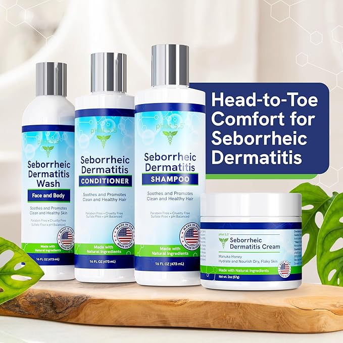 - RESPONSIBLY SOURCED, MADE IN THE USA. pHat 5.5’s Seborrheic Dermatitis Shampoo is free of potentially harmful chemicals, parabens, sulfates, and cruelty. Use our sulfate free shampoo and conditioner together to achieve optimum results—balanced and healthy hair and scalp.