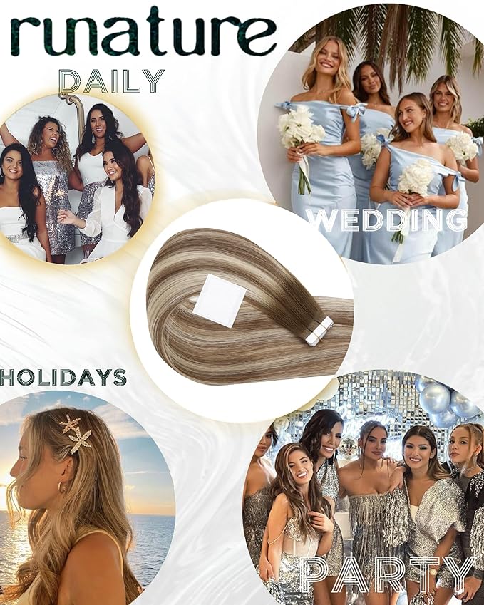 RUNATURE 24 Inch Tape in Hair Extensions Human Hair Balayage Hair Extensions Tape in Human Hair Ombre Brown to Blonde Human Hair Tape in Extensions Natural Looking Silky 20pcs 50g