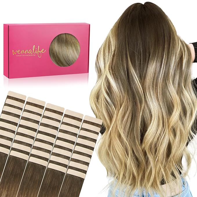 - 【Specification & Color Match】WENNALIFE tape in hair extensions 40 pieces 100g per set, from 10" to 26". Ombre walnut brown to ash brown and bleach blonde hair extensions are walnut brown base blended with painted ash brown and bleach blonde highlights. For these upgraded tape ins, we recommend 1 pack for increasing volume of hair and 2-3 packs for a full head. They come with replacement tapes, it's easy to change when it is not in good condition.