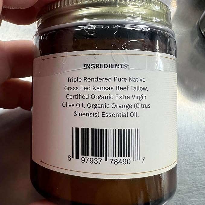 Beef Tallow Balm - 4 oz - Made in USA - Organic Grass Fed and Finished Tallow - Moisturizing Skin Care Orange