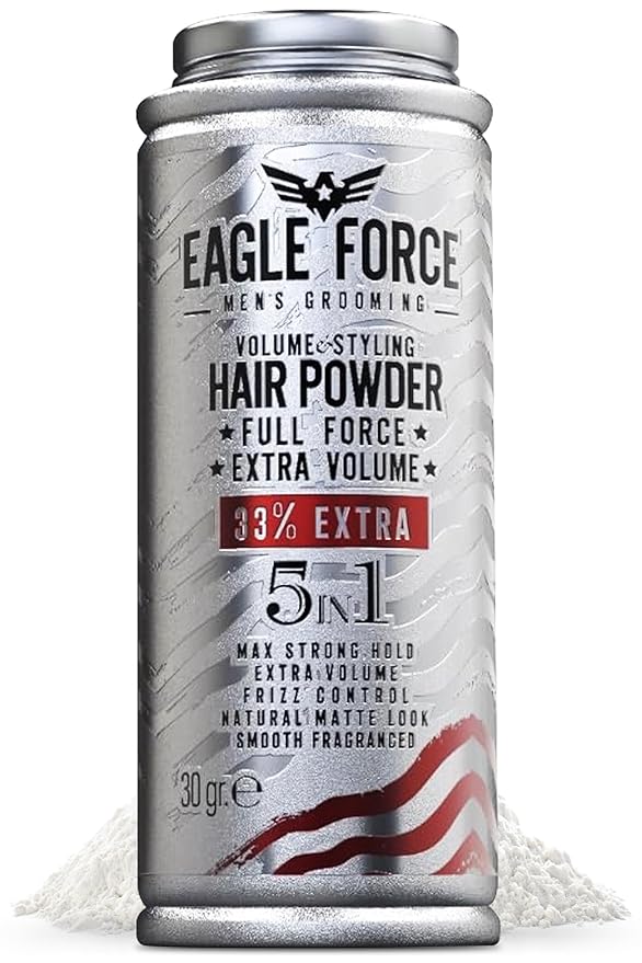 - STRONG FIRM HOLD, MATTE FINISH: Eagle Force 5-in-1 Volume & Styling Powder helps firm your hair by giving it more volume, maximum strong hold, & matte finish. Achieve a natural look & style your hair easily in any way with this hair texture powder.