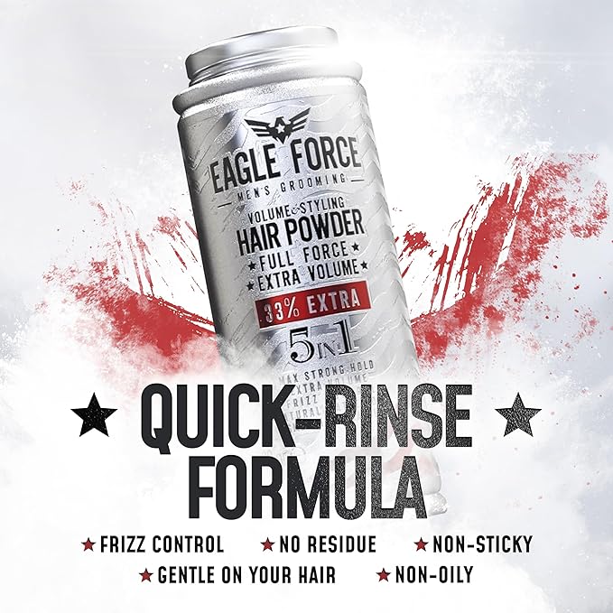 - EASY TO WASH WITH JUST WATER, NO RESIDUE. This hair powder volumizer has quick-rinse formula, so you don't have to worry about any hassle from additional hair care. Eagle Force Styling Powder maintains the health and vibrancy of your hair.