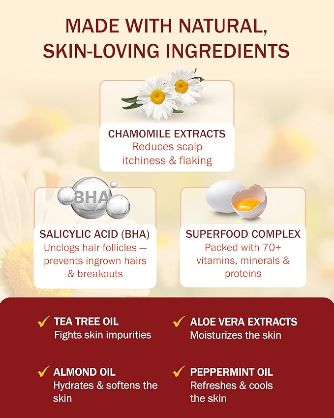 - Potent Natural Ingredients: Salicylic acid shampoo with chamomile extract, and tea tree oil, and infused with a skin-loving superfood complex, aloe vera, and peppermint oil, this itchy scalp shampoo and hair serum for women and men support optimal scalp and hair care.