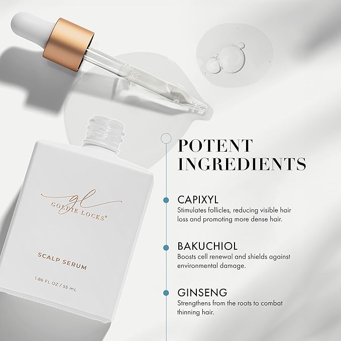 Goldie Locks Scalp Serum, Stimulates Hair Growth, Thickens Strands with Capixyl, Ginseng & Probiotic, Strengthens, Restores, Nourishes All Hair Types, Extensions & Scalp Health, Hydrating, 1.86 Fl Oz