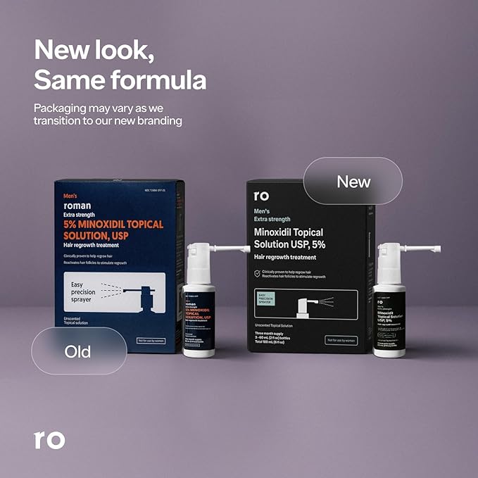 Roman Men's Topical Hair Regrowth Treatment Spray | 5% Minoxidil Solution, Clinically Proven for Thinning Hair, Easy to Use, Unscented | 3-Month Supply