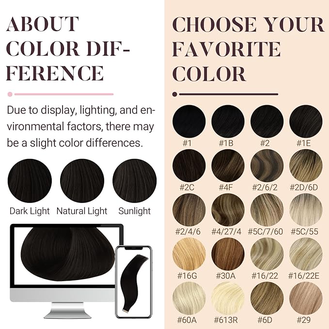 - Tape in Hair Extensions Quality: 100% remy human hair extensions, salon quality, thick & full ends, no split, no tangles, no shedding, soft and smooth,lightweight, ensuring maximum comfort throughout the day and allowing for a natural and seamless look, can perfectly blend with your own hair. It can be washed, straighten, curled, etc