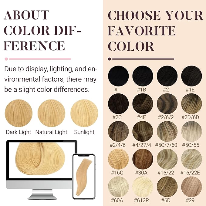 - Tape in Hair Extensions Quality: 100% remy human hair extensions, salon quality, thick & full ends, no split, no tangles, no shedding, soft and smooth,lightweight, ensuring maximum comfort throughout the day and allowing for a natural and seamless look, can perfectly blend with your own hair. It can be washed, straighten, curled, etc