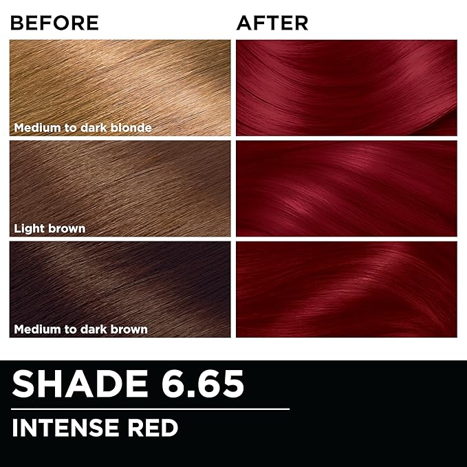 - Olia 6.65 Intense Red Permanent Hair Dye: This red hair dye with intense red reflects provides 100% gray coverage to achieve vivid, radiant long lasting color for all hair textures
