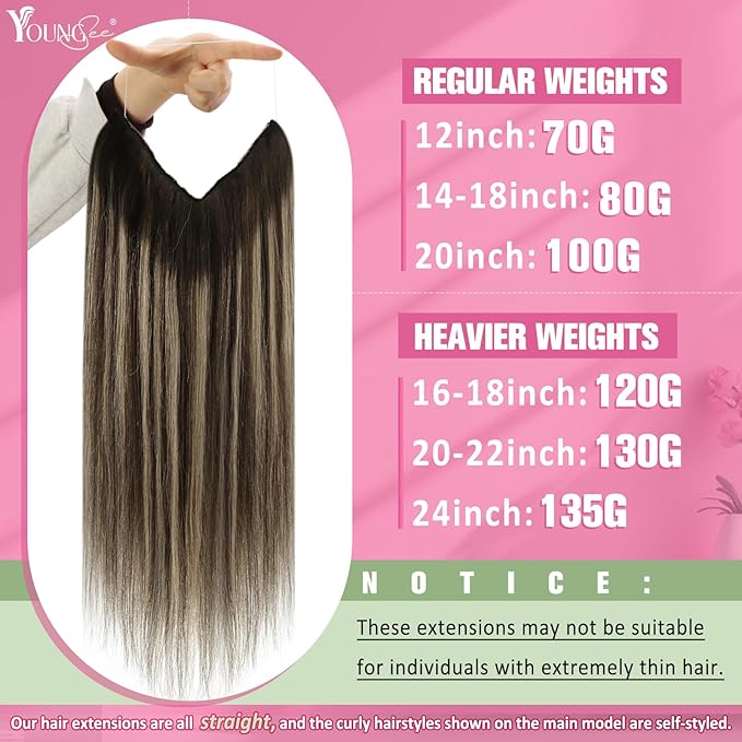 - YoungSee wire hair extensions: Made from real human hair for a natural blend with your own hair; can be styled, curled, or dyed (heat tools below 180°C); lighter shades can be dyed darker