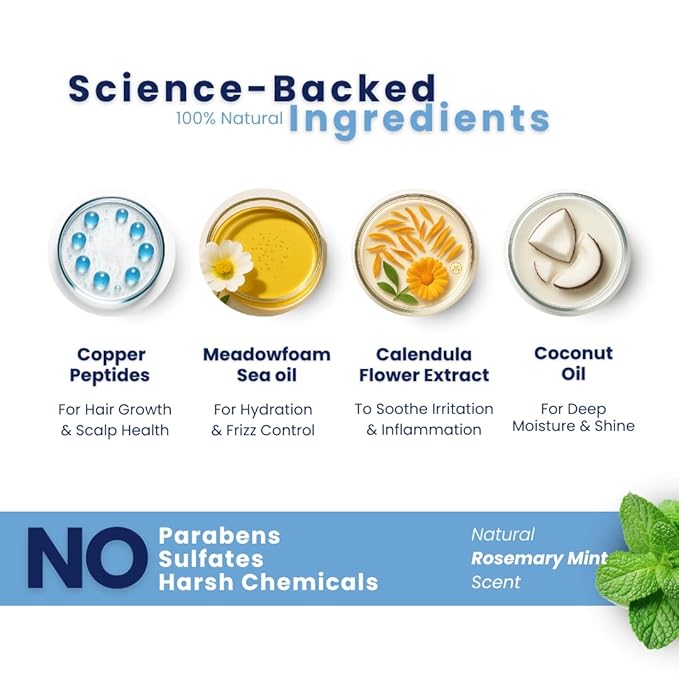 - Powered by Copper Peptides - Clinically studied ingredients like copper peptides and creatine support scalp circulation, reinforce the hair shaft, and help improve the look and feel of weak, brittle strands.