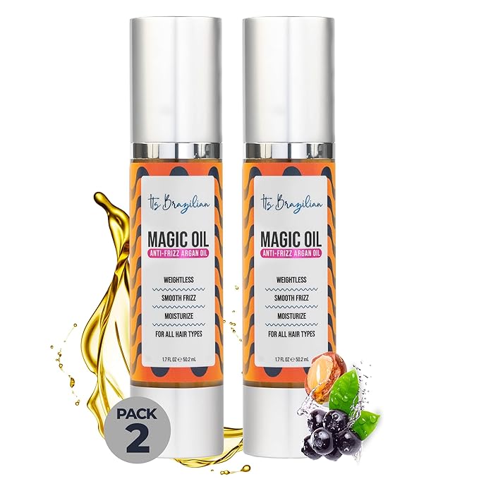 IT'S BRAZILIAN - 2 Pack 100% Pure Organic Argan Oil 1.7Floz -Hair Care Treatment Dry, Damaged & Anti-Frizz -Nourishment & Moisturizing Formula -All Hair - Hair Growth Products, Renewing, Strengthening