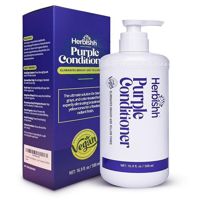 - NEUTRALIZE BRASSINESS & YELLOW TONES: Say goodbye to stubborn yellow and brassy hues with Herbishh Purple Conditioner. Designed for blonde, silver, and highlighted hair, this toning conditioner keeps your color cool-toned, vibrant, and salon-fresh.