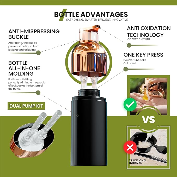 - 【GRAY HAIR COVERAGE & COLOR TRANSFORMATION】 Effectively covers gray hair and achieves hair color transformation with natural looking, shiny, healthier, evenly colored, and Non-Stick to the scalp hair dye. It is Instant, vibrant color, and long lasting. General Note: Transforming to a darker color is reliably achievable while transforming from a darker (Dyed) hair to a lighter shade is typically challenging. For natural hair color (non Dyed), you can achieve 1 to 2 shades lighter.