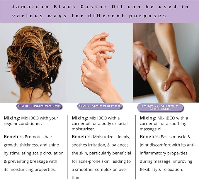 - EXCEPTIONAL CUSTOMER SUPPORT: Contact us anytime via Amazon with questions on our pure Jamaican black castor oil. Note: extra dark Jamaican black castor oil is thicker with a natural roasted aroma.”