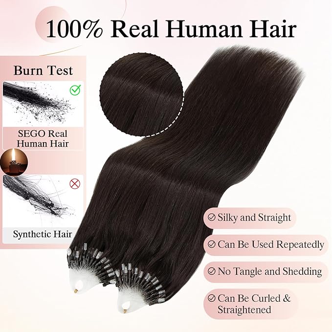 - 【Human Hair】SEGOHAIR Micro loop extensions are made from high-quality human hair, ensuring their authenticity and seamless integration with your natural hair. The hair is tangle-free, does not shed, and is free of split ends, ensuring a smooth and seamless hairstyle.
