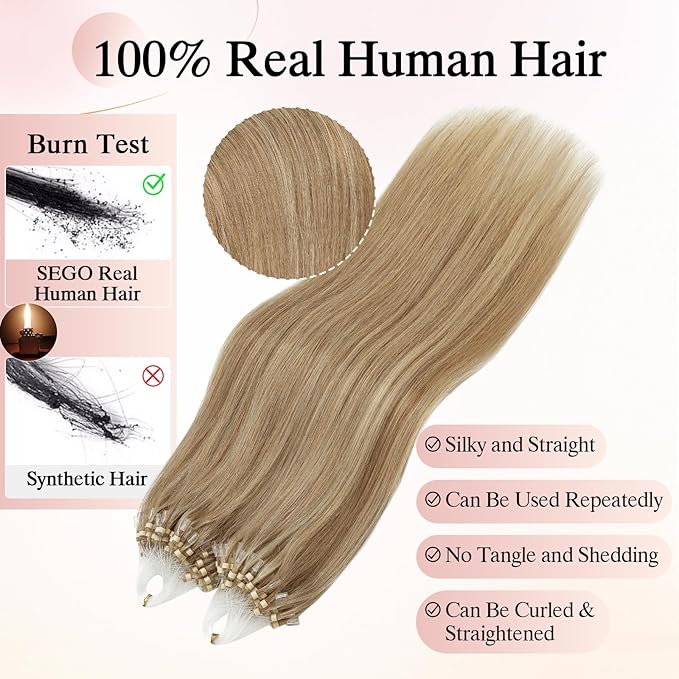- 【Human Hair】SEGOHAIR Micro loop extensions are made from high-quality human hair, ensuring their authenticity and seamless integration with your natural hair. The hair is tangle-free, does not shed, and is free of split ends, ensuring a smooth and seamless hairstyle.