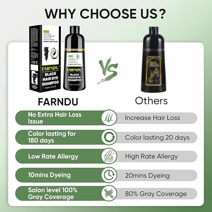 - Warm Tips: Please do skin allergy test before use and if you have allergy reaction please stop using. Any concerns about our hair dye shampoo please feel free to contact us, we will be glad to help you within 24 hours.