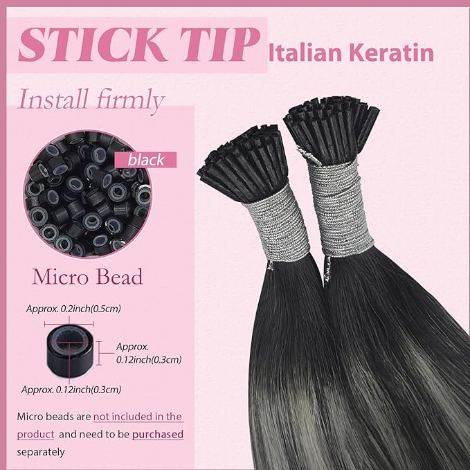 YoungSee I Tip Hair Extensions Human Hair Ombre I Tip Hair Extensions Real Human Hair Black Balayage Silver Itip Hair Extension for Women 24In 50g 50s