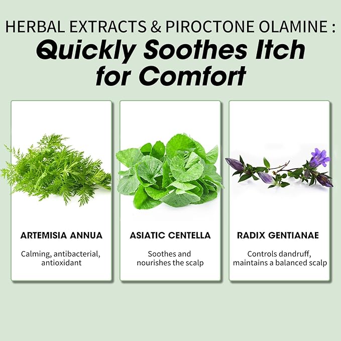 - 【Natural Plant Extracts】: Our product combines the soothing and repairing properties of artemisia annua extract to alleviate scalp discomfort and restore a refreshed feeling. Centella Asiatica extract calms and protects the scalp, while gentian root extract helps maintain a clean, healthy scalp. With these plant extracts and advanced anti-dandruff ingredients, our shampoo offers comprehensive scalp care.