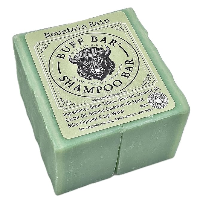 Pure Bison Tallow Buff Shampoo Bar, Mountain Rain, (2 pack) - Scents of Sea Salt, Moss, & Freesia - Cleans, Moisturizes, Naturally Derived, No Dyes, No Chemicals, No Preservatives