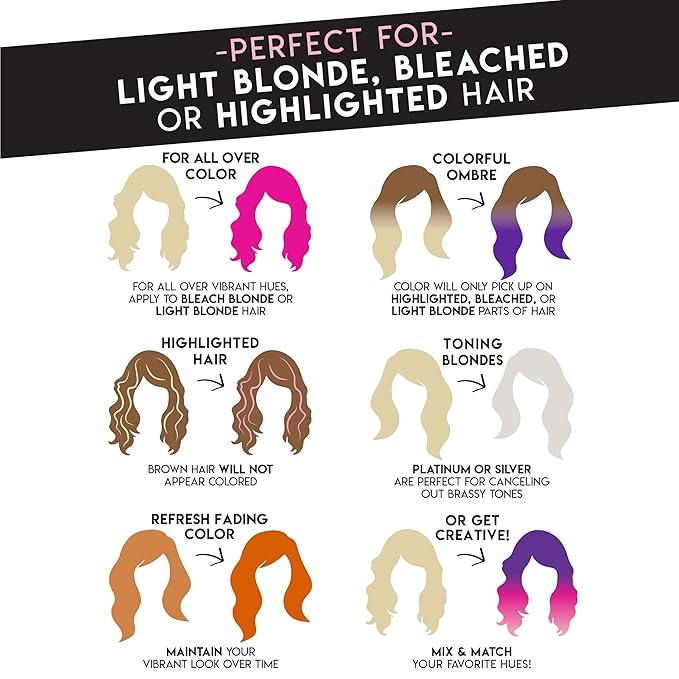 - Customizable Intensity: Amplify light blonde or bleached hair with the dreamy, pastel tones of Lilac for a magical touch
