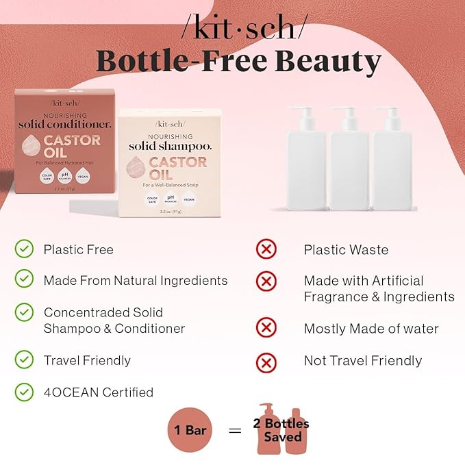 Kitsch Castor Oil Shampoo and Conditioner Set - Organic Castor Oil Hair Care for Dull & Dry Hair - Nourishing Bar Soap for Hair Growth - Free of Sulfate, Silicone, & Paraben - Made in USA - 2pcs