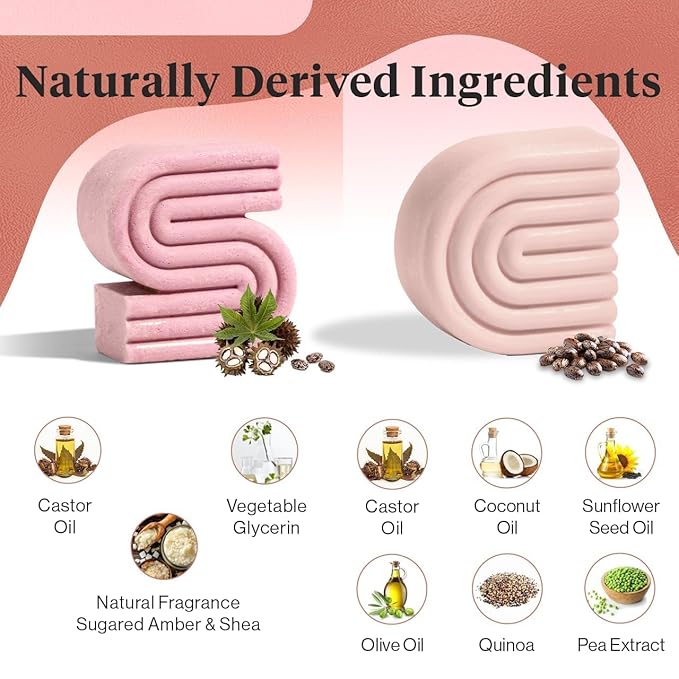 - STRENGTHENS FOR FULLER-LOOKING HAIR: Castor oil is known for its deeply moisturizing properties, which help improve hair flexibility and reduce the risk of breakage caused by dryness or over-processing. Using both bars together helps support visibly healthier, fuller-looking strands over time.