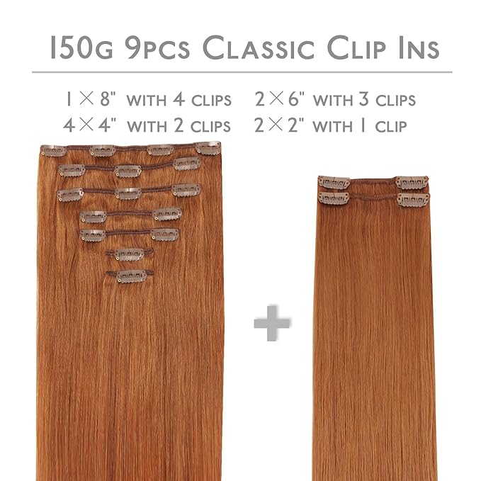 - 【Clip In Hair Extensions Specification】- WENNALIFE clip in hair extensions real human hair. The packaging consists of two parts: 2 test pieces on the top layer & 1 set of classic clip in hair which is 7 pieces 120g in the inner box. This set is 135g net weight without clips, 150g with clips. 1 pack is enough for fine hair, 2 packs are recommended if prefer thick hair.