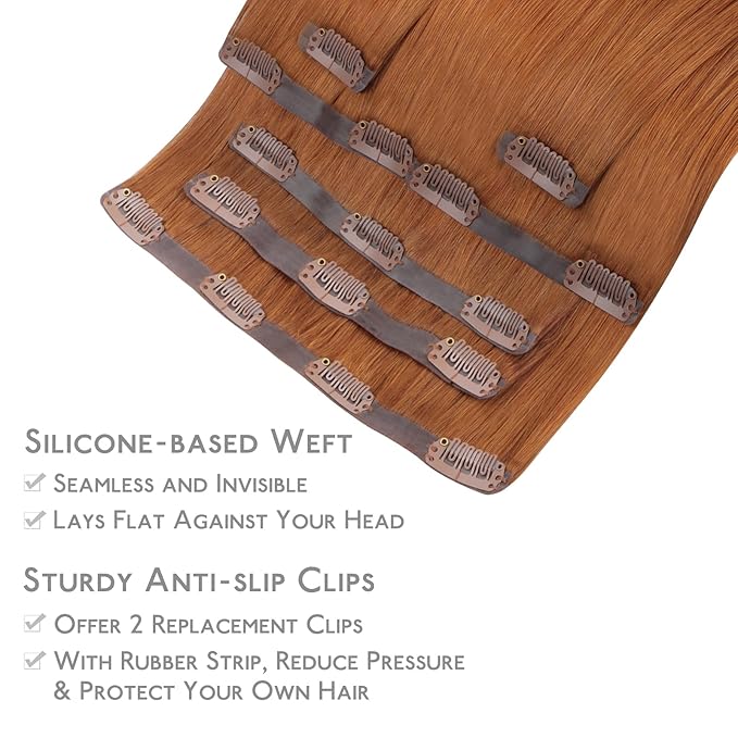- 【Seamless Clip In Hair Extensions Quality Assurance】- Invisible and comfortable seamless clip in hair extensions are made with high-quality virgin human hair, silky salon professional human hair, soft like your own natural hair, no shedding, no tangling. They are made with a thin silicone-weft base that lays flat against your head and lets you feel more comfortable. A thin silicone-based weft base can create a more natural look.