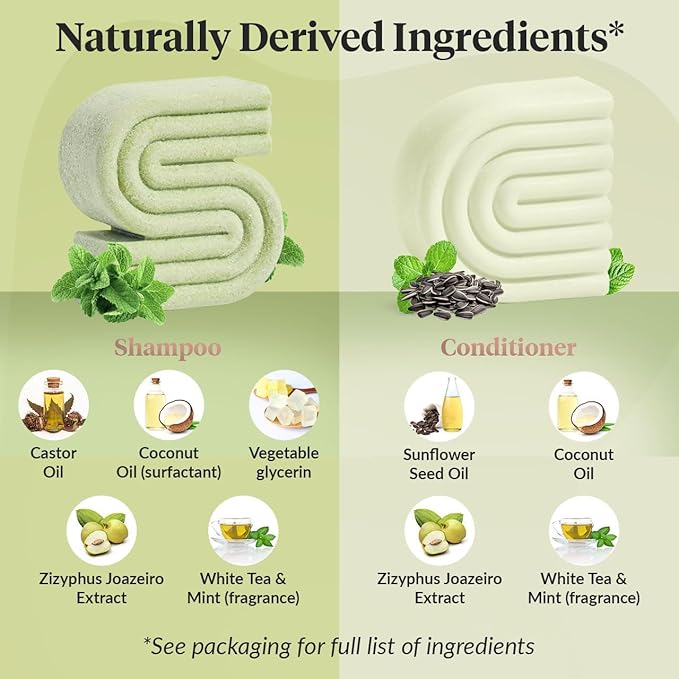- TEA TREE & MINT BLEND FOR A COOLING, CALMING EXPERIENCE: Tea tree shampoo helps regulate oil production, while mint delivers a cooling and soothing sensation to the scalp. The conditioner bar complements it by replenishing moisture and softening strands, creating a refreshing, spa-like hair care experience at home.