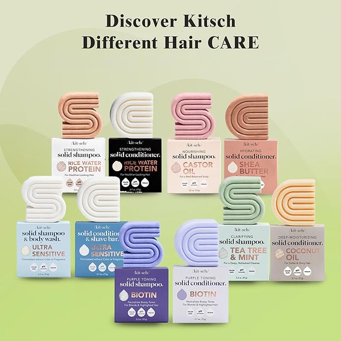 Kitsch Tea Tree Shampoo and Conditioner Set – Anti Dandruff Shampoo Bar & Conditioner Bar - Hair Care for All Hair Types - Free of Paraben, Sulfate & Silicone - Made in USA - 2 pcs