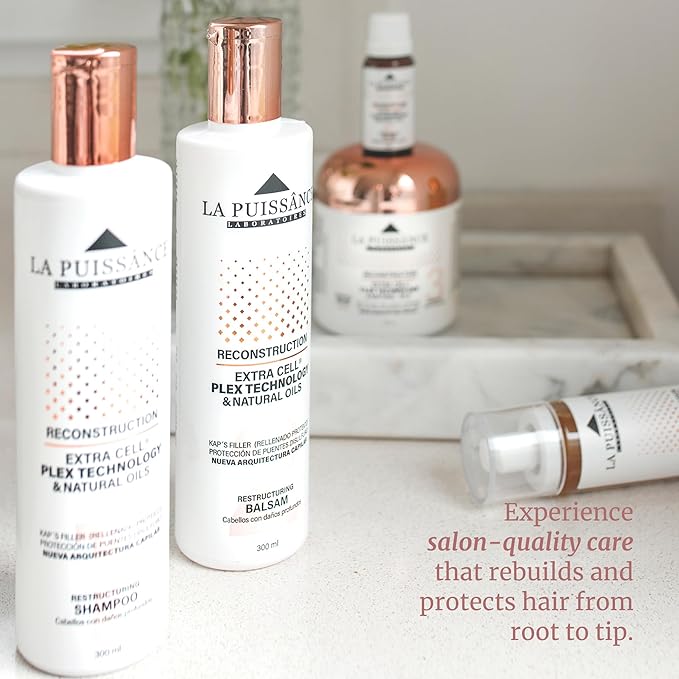 LA PUISSANCE Extra Cell Plex Complete Hair Repair - 5-Step Deep Repair Kit for Severely Damaged Hair - Includes Shampoo, Conditioner, Mask, Spray, Ampoule - For Home and Salone Use