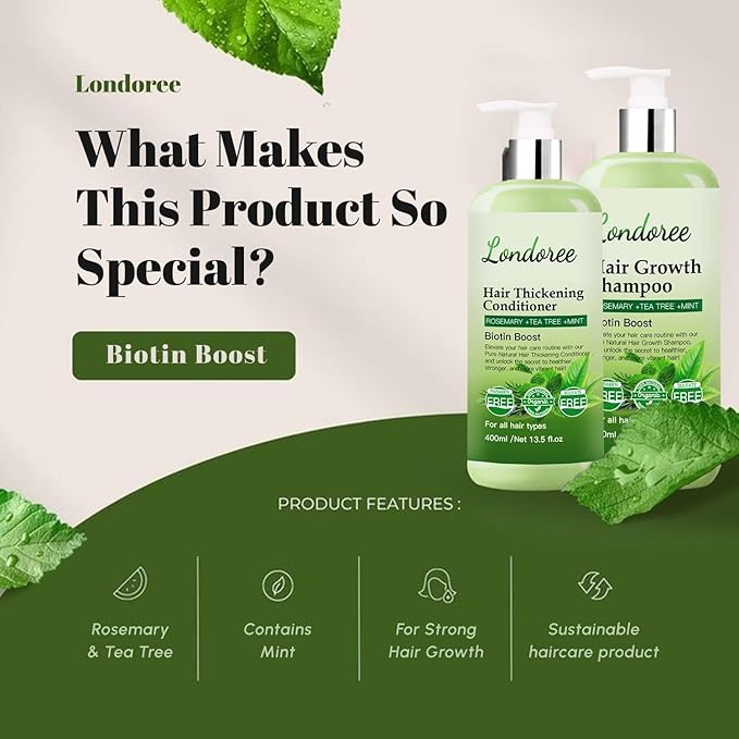 - [Complete Strength and Nourishment]: Experience the ultimate hair care with our Rosemary & Mint Shampoo & Conditioner. Enriched with Biotin and the stimulating properties of Rosemary, this Shampoo & Conditioner strengthens hair from root to tip, increases hair density, and effectively thickens weak and brittle strands for fuller, healthier-looking locks. Rosemary also promotes improved circulation to the scalp, encouraging robust hair growth
