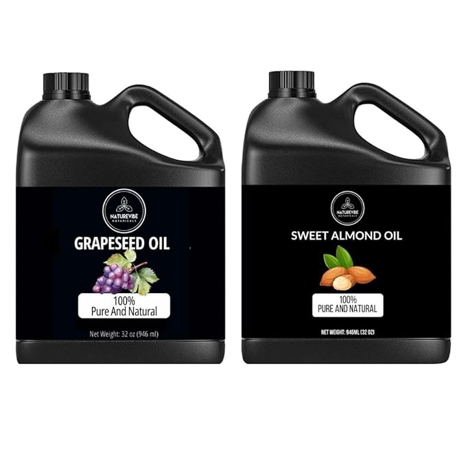 Naturevibe Botanicals Grapeseed Oil 32oz and Sweet Almond Oil 32oz|Oil Combo