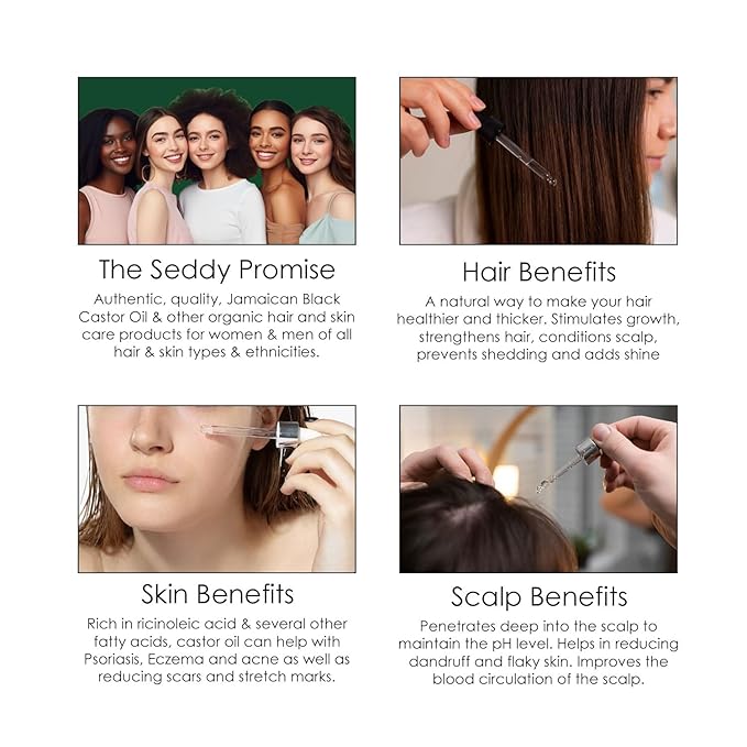 Seddy Organic Jamaican Black Castor Oil - with Rosemary & Peppermint in Glass Bottle - Cold Pressed | Hexane-Free | Promotes Hair Growth | Strengthens Hair | Hair Treatment Oil - 3.4 Fl. Oz