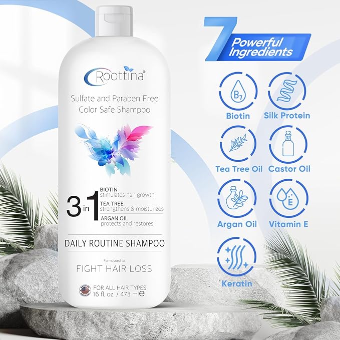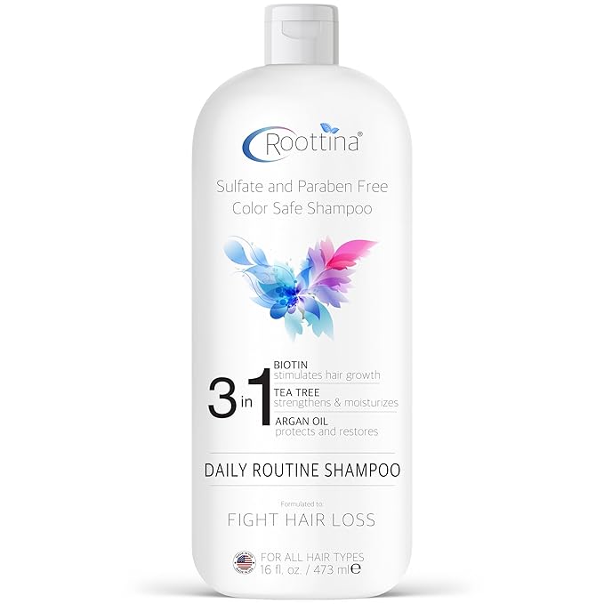 - STRENGTHENING SHAMPOO FOR HAIR GROWTH SUPPORT: Roottina is a Strengthening Shampoo that uses advanced DHT Blockers to help reduce thinning and shedding. It promotes healthier scalp conditions to support natural regrowth. This potent formula strengthens weak follicles, perfect for thinning hair, bald spots, or a receding hairline. Our Roottina Daily Routine Shampoo for Thinning Hair works on all hair types. This daily-use shampoo helps restore hair strength, thickness, and volume.