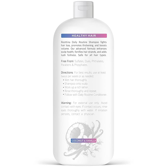 Fights Hair Loss, Roottina Daily Routine Shampoo, Strengthens and Fortifies, Promotes Hair Growth, Hair Thickening Shampoo with DHT Blockers, Coconut and Vanilla Scent, Made in USA (16 fl oz)