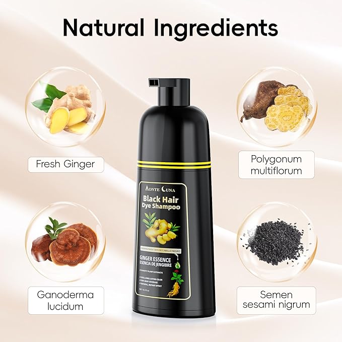 IIIMEIDU Black Hair Dye Shampoo 3 in 1, Natural Hair Dye Semi Permanent Hair Color, Gray Hair Cover Up, Ginger Essence shampoo for Color Treated Hair for Women and Men (500ml) 1
