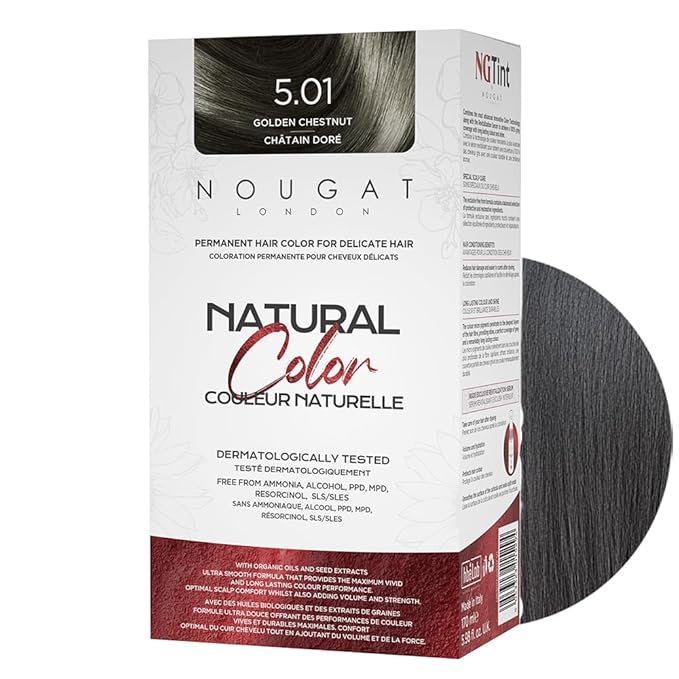 NOUGAT Golden Chestnut Natural Permanent Hair Color Kit,Dermatologically Tested, Ammonia & Alcohol Free, 100% Grey Coverage, Hair Mask & Essence included, Long Lasting
