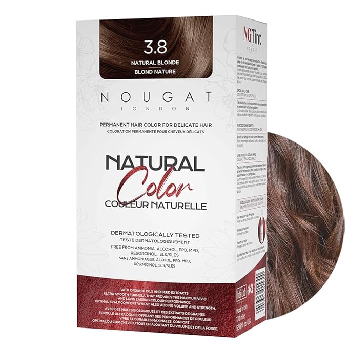 NOUGAT Natural Blonde Natural Permanent Hair Color Kit,Dermatologically Tested, Ammonia & Alcohol Free, 100% Grey Coverage, Hair Mask & Essence included, Long Lasting