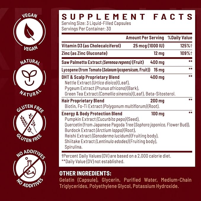 DHT Blocker for Men | Hair Growth Supplement with Saw Palmetto & Biotin - Hair Growth Vitamins - Hair Regrowth - Natural Hair Loss Supplements Liquid-Filled - Proprietary Herbal Blends (90 Capsules)