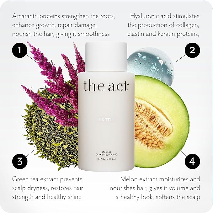 - 💦Nourishing Plant-Based Oil Complex: Infused with a blend of valuable plant oils like coconut oil, The Act shampoo strengthens hair from the roots, helping to enhance thickness and density. Castor oil offers protective benefits, helping to "seal" the ends of the hair, minimizing breakage and split ends.