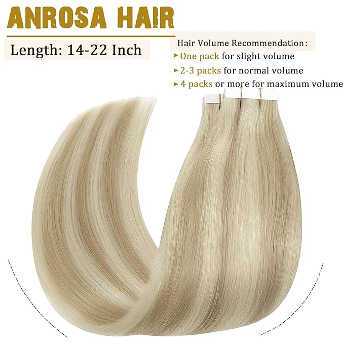 - Length and Thickness : Get Install Length (14”-22”) and Thickness with Anrosa Human Remy Tape Hair ,the Remy Hair is Super Healthy ,Soft and Silky with Nicely Natural Look and Match,Can be Blend Best with Your Natural Hair.