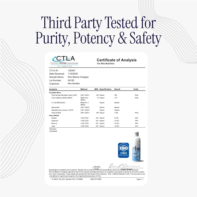- WHY COLLAGEN MATTERS: Collagen, the body’s most abundant protein, is essential for skin elasticity and joint health. After age 30, collagen production declines by 1% annually, resulting in fine lines and joint discomfort. Rho Liposomal Collagen Peptides contain Marine Hydrolyzed Collagen and Marine Cartilage Extract for superior absorption, enhanced by natural polysaccharides like hyaluronic acid, chondroitin, and glucosamine, promoting lasting skin hydration, elasticity, and joint comfort.